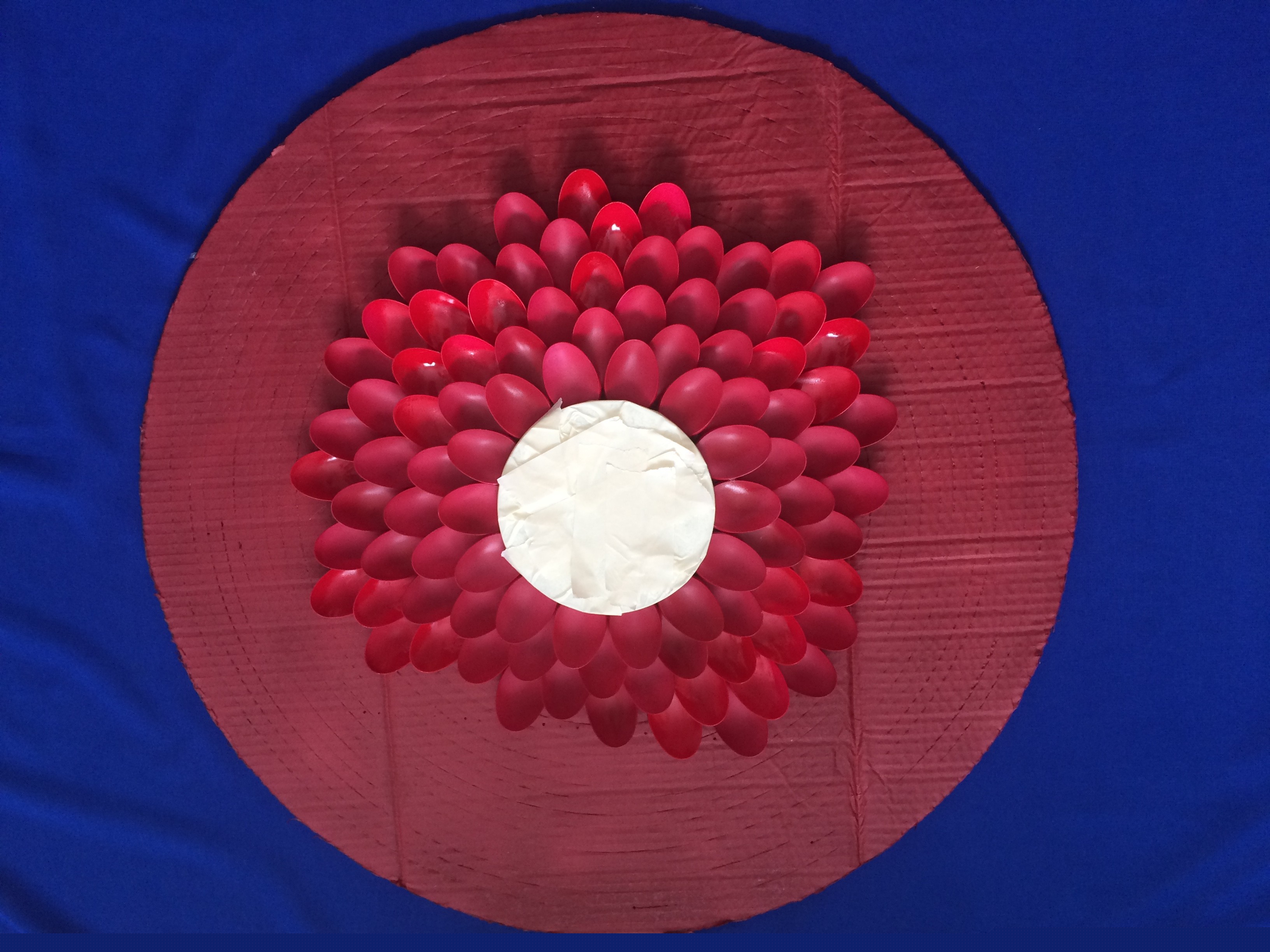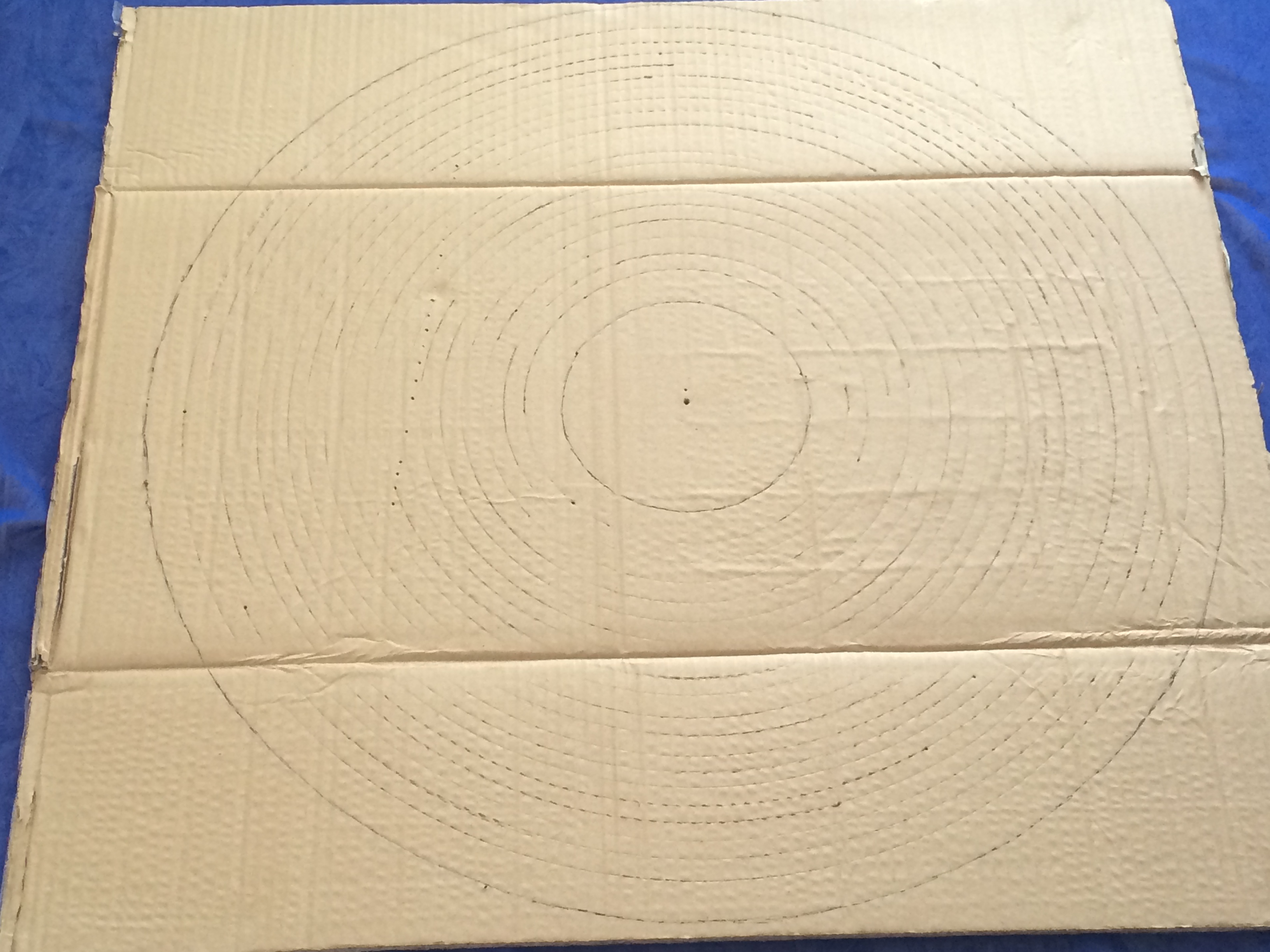 1. Schneidet aus der Pappe einen Kreis aus. Entweder mit einem runden Gegenstand, in einer Größe, wie euer Flower Spoon Mirror werden soll. Oder... Wenn ihr keinen so großen Gegenstand habt, dann so: Nehmt einen Streifen Pappe und macht an beiden Enden ein Loch hinein. In das eine Loch steckt ihr dann einen Bleistift oder ähnliches und in das andere Ende zum Beispiel ein Nagel oder auch einen Bleistift, mit dem ihr dann den Streifen Pappe fixieren könnt. Anschließend dreht ihr den Stift um die Achse, so dass ein Kreis entsteht. Das geht sicherlich auch mit einem anderen Hilfsmittel, wie zum Beispiel mit einem Streifen Plastik, Holzlatte oder Metall.