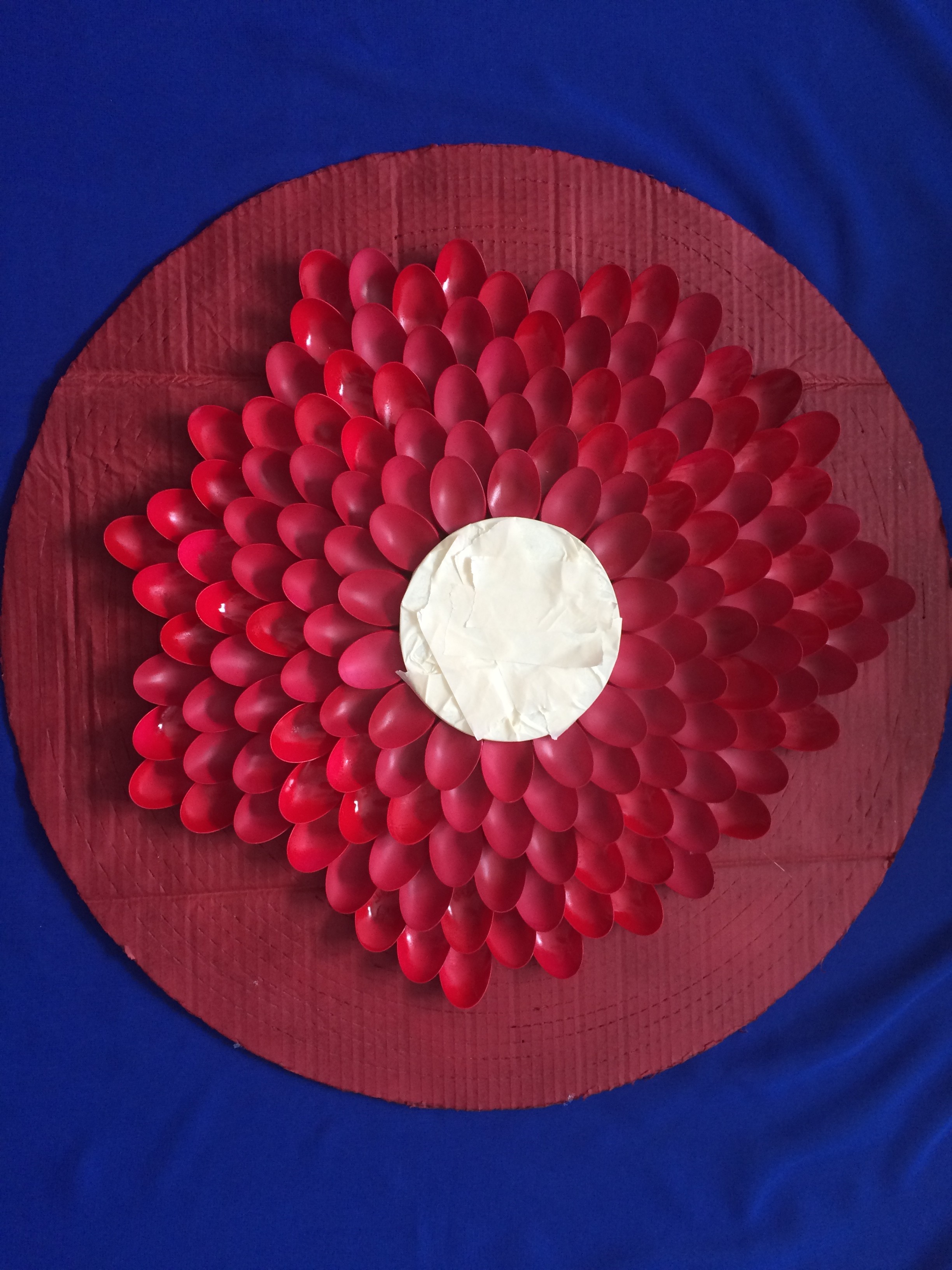 7. Als nächstes klebt alle eure Löffel versetzt auf die Pappe.